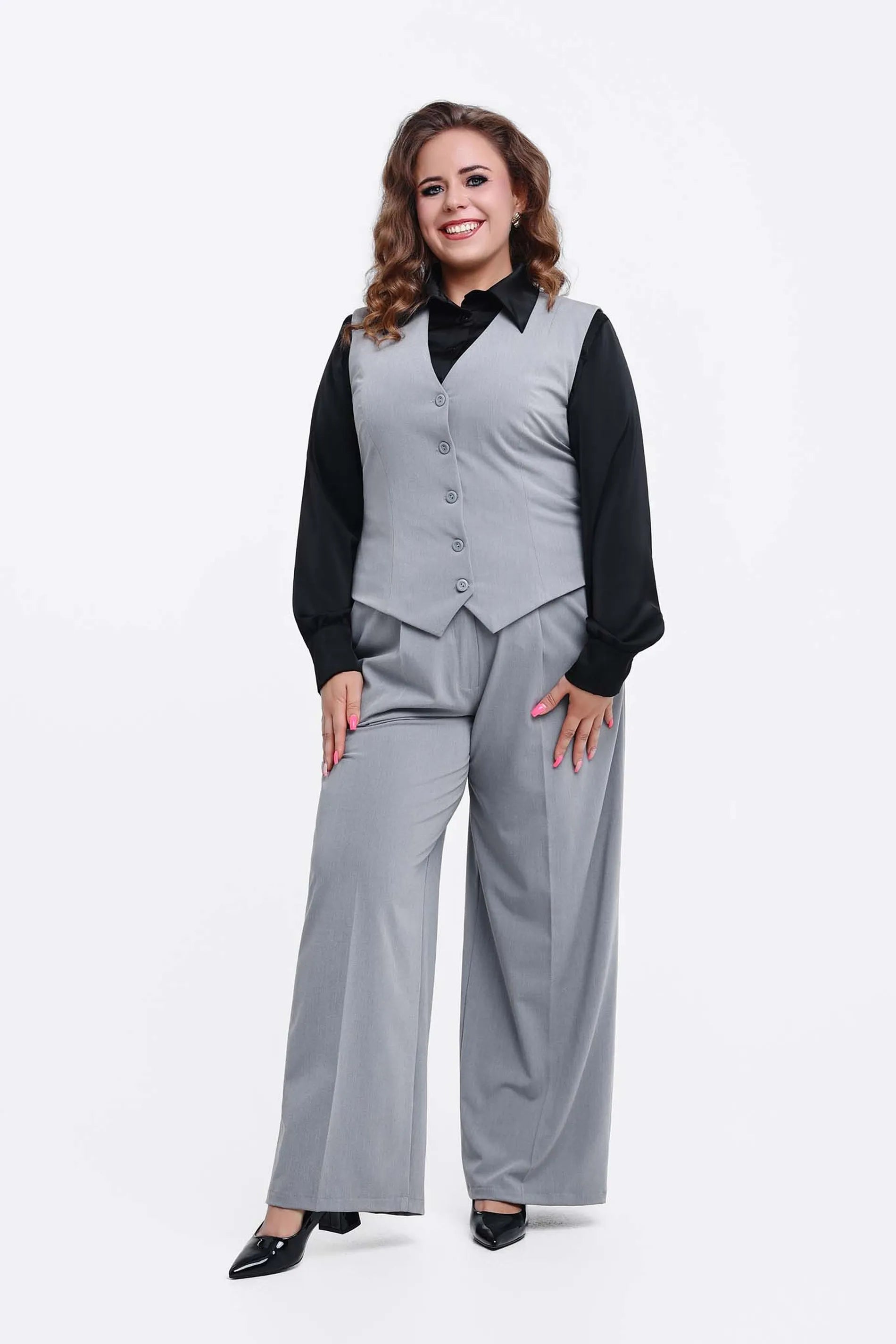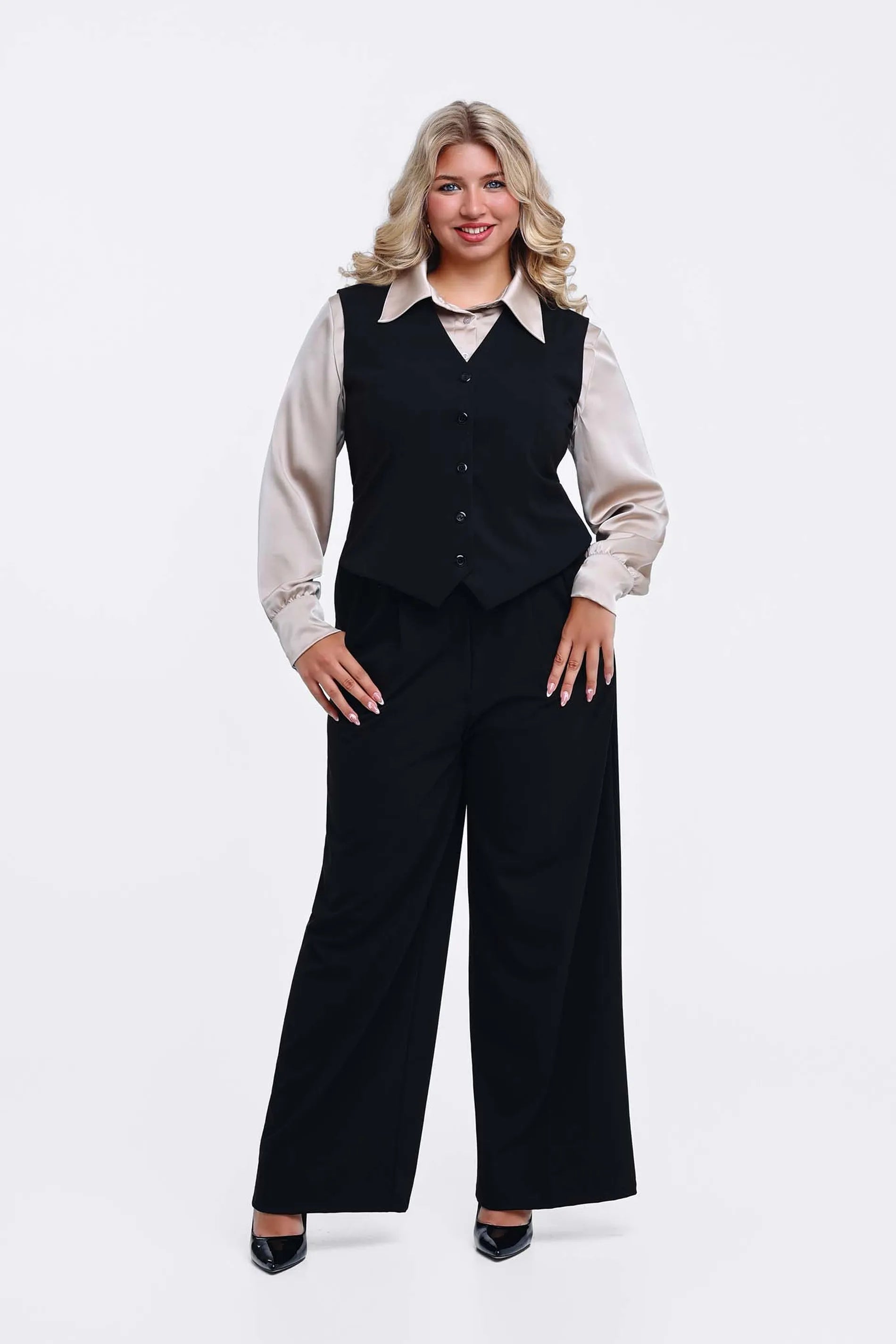 A Bianca nadrág a modern nő ruhatárának elengedhetetlen darabja. Magas derekú, bő szárú fazonja optikailag nyújtja az alakot, miközben maximális kényelmet biztosít. Lágy esésű, minőségi anyaga eleganciát sugároz, így tökéletes választás az irodától kezdve a baráti találkozókig. Viseld a hozzá tartozó Bianca mellénnyel egy trendi, teljes szettért, vagy kombináld egy egyszerű pólóval a hétköznapi sikk jegyében. Érezd magad magabiztosnak és stílusosnak!