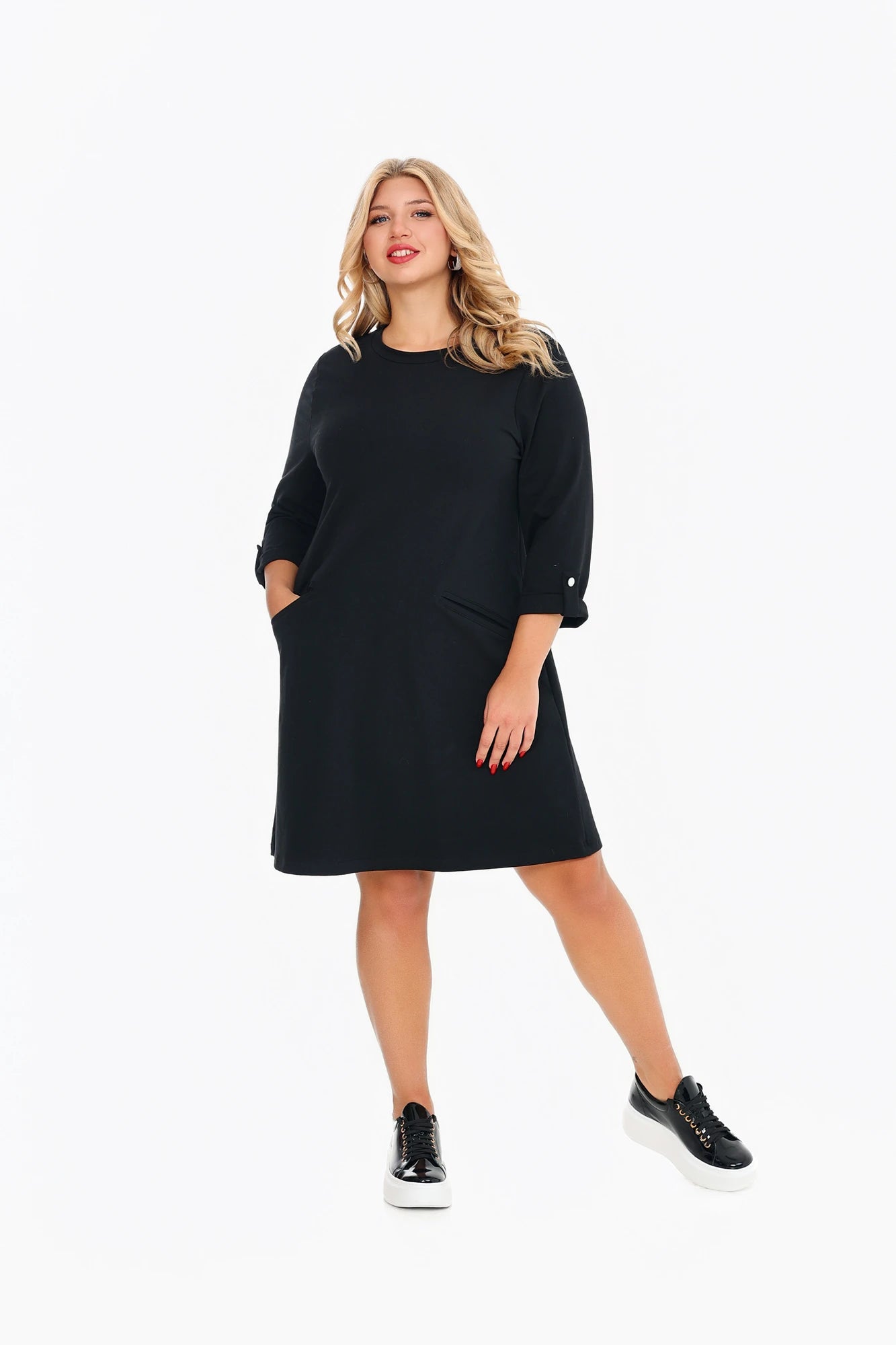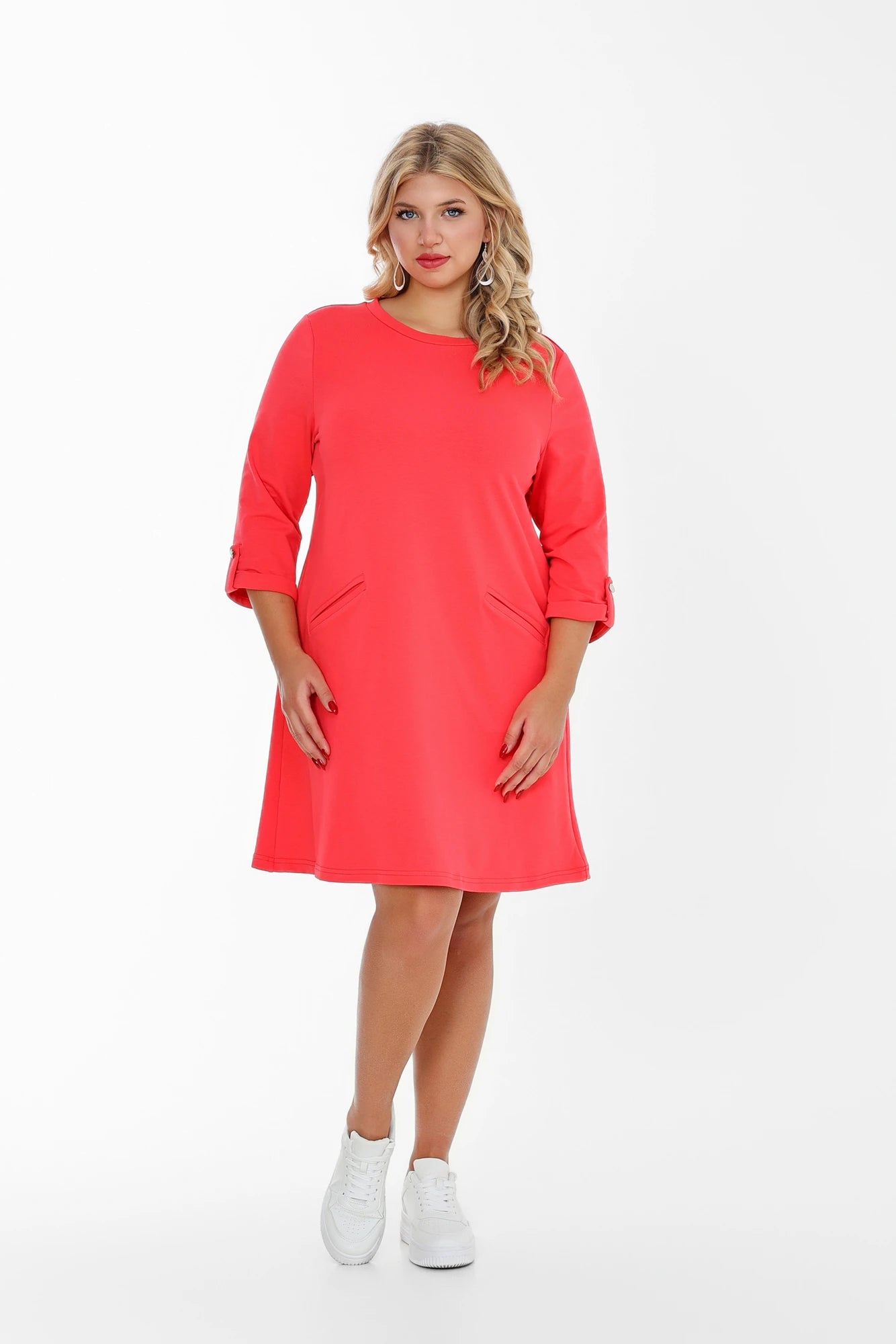 Könnyedség és nőiesség pamutból! A CAMILLA ruha laza, kényelmes szabásával és rejtett zsebeivel a mindennapok kedvence lesz. A háromnegyedes, felhajtható ujja játékos, lezser hangulatot teremt, miközben a puha pamut anyag egész nap kényezteti a bőröd. Kerek nyakkivágása letisztult, nőies vonalat rajzol. Sportcipővel és nagy táskával tökéletes városi szett! Élvezd a kényelmet stílusosan, minden évszakban!