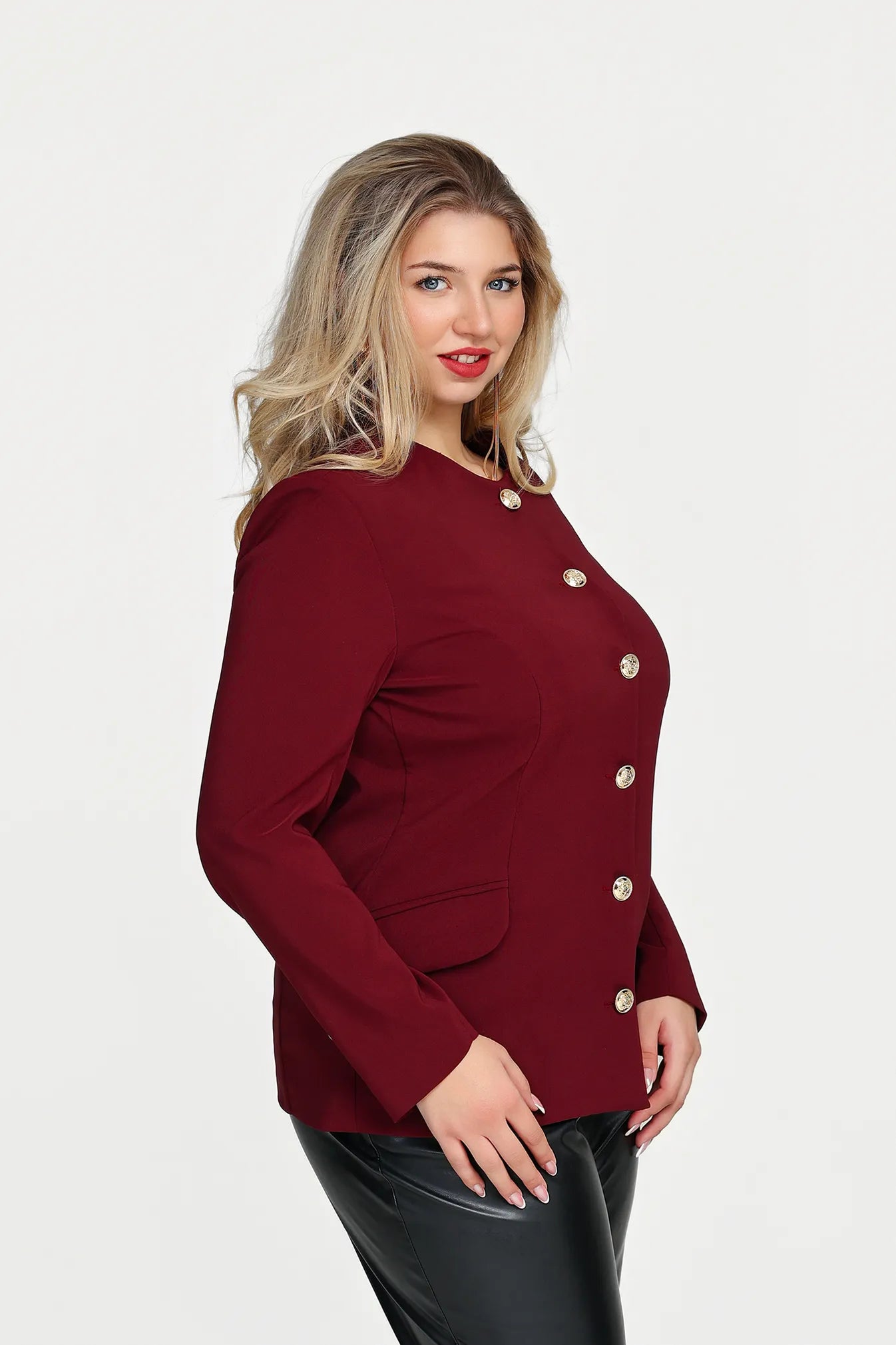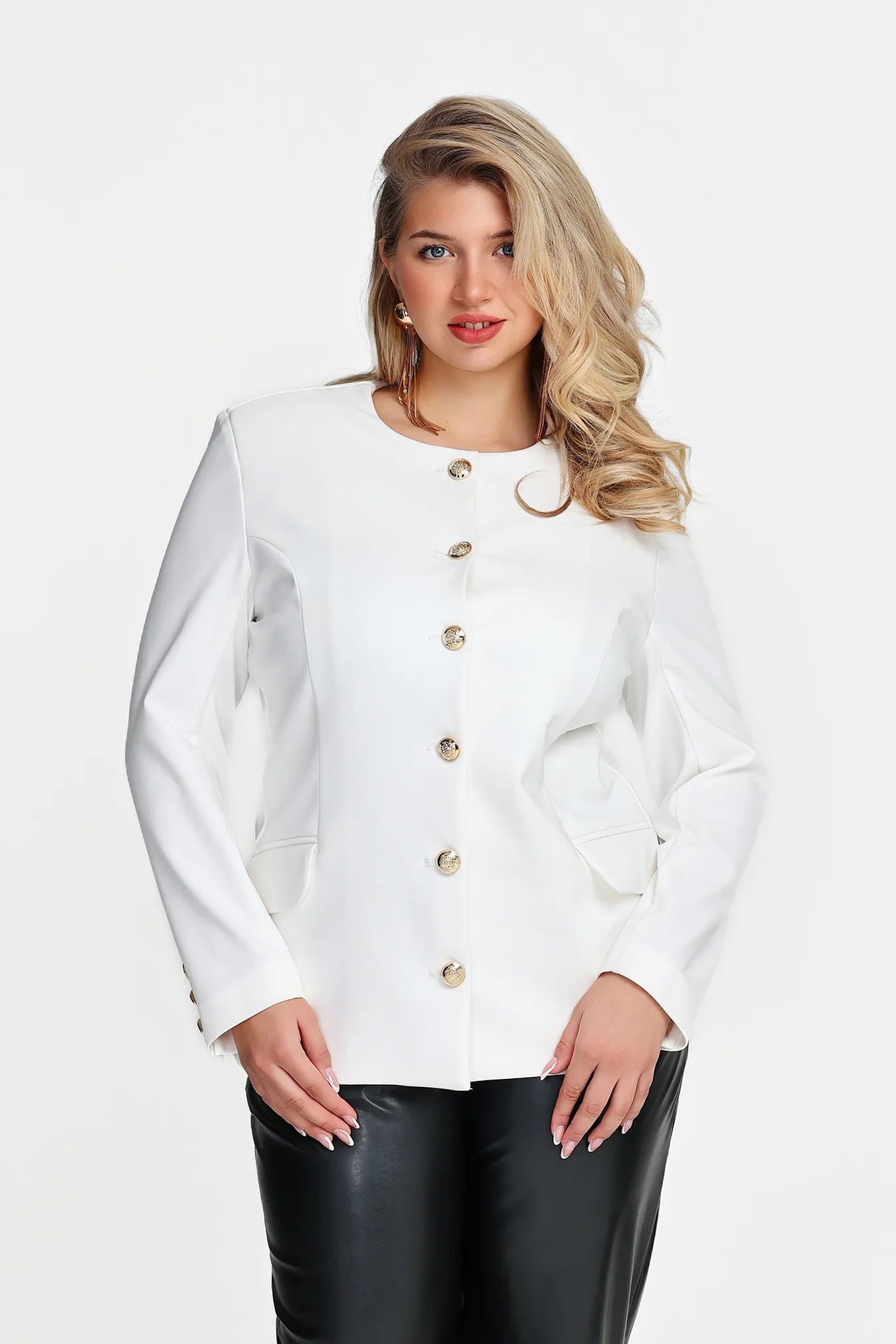 A CELIRA blézer az elegancia és a magabiztosság tökéletes ötvözete. Gallér nélküli, kerek nyakkivágású szabása modern és nőies vonalat ad, míg az arany színű, dekoratív gombok igazán különlegessé teszik ezt a darabot. A testhez simuló, mégis kényelmes fazon kiemeli az alakot, a zsebek pedig nemcsak praktikusak, hanem stílusos részletként is működnek. A mandzsettán található gombdíszítés az igényességről árulkodik. Négy gyönyörű színben – bézs, fehér, fekete és bordó – érhető el, így irodába, üzleti tárgyalásra vagy akár egy különleges vacsorára is megtalálod a tökéletes választást. A CELIRA blézer az a ruhatári alapdarab, ami minden öltözékedet felemeli.