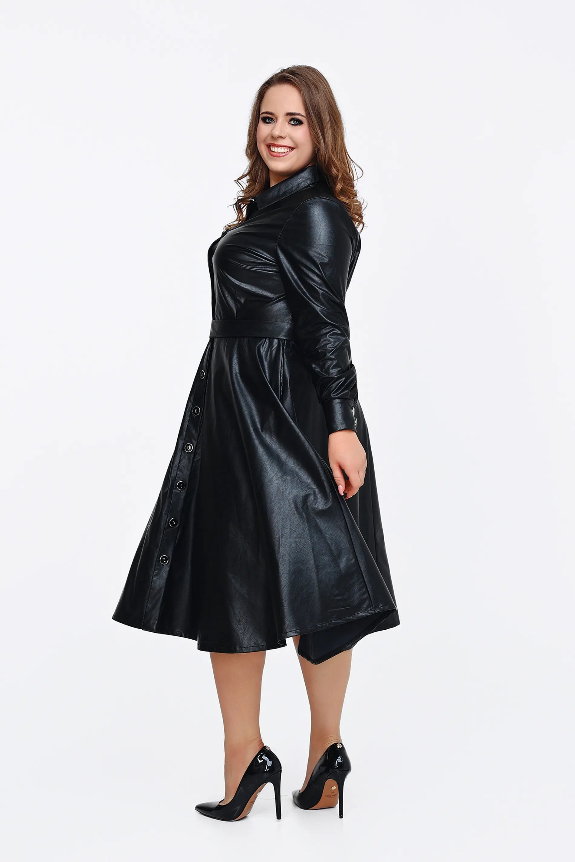 A Daisy lather ruha a szezon abszolút statement darabja, amiben garantáltan minden szem rád szegeződik. A luxus érzetét keltő bőr- vagy velúrhatású anyag és a klasszikus, végig gombolt ing-ruha fazon találkozása egyszerre vagány és rendkívül nőies. Derékszabása finoman hangsúlyozza a sziluettet, miközben kényelmes viseletet biztosít. Ez a ruha önmagában egy teljes outfit, ami nem igényel túlzó kiegészítőket. Elérhető 3 színben, M-4XL méretig.