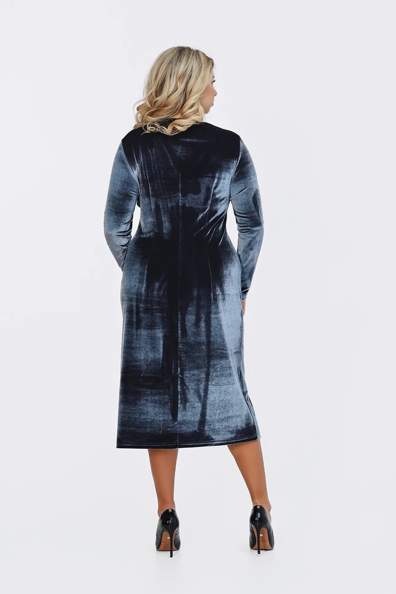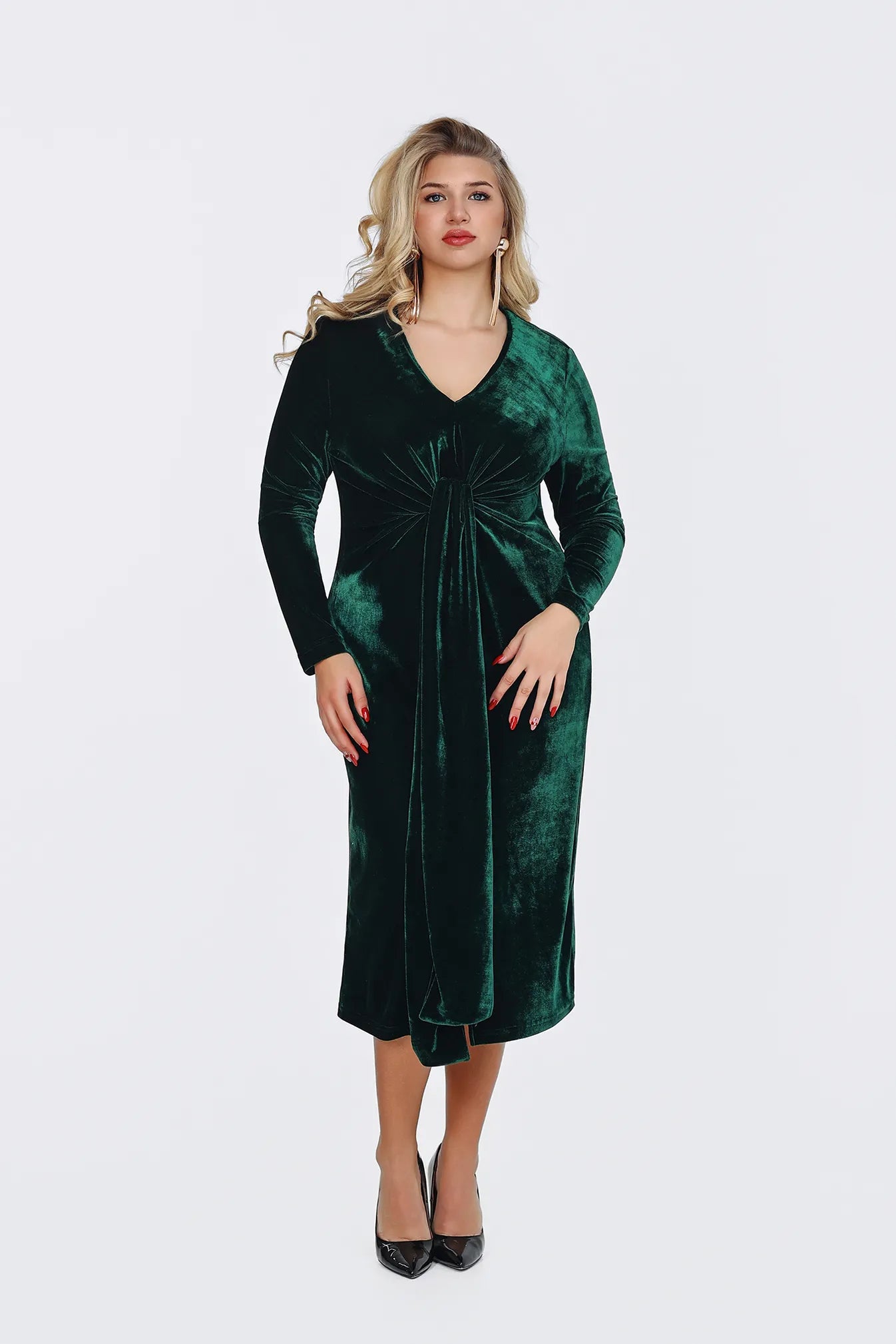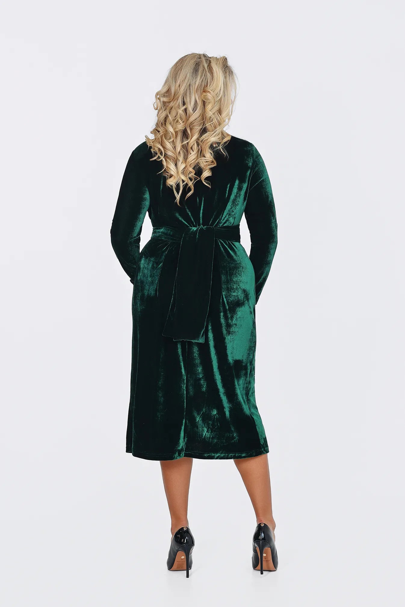 A Divina ruha a kortalan eleganciát és a luxus érzetét hozza el gardróbodba. Bársonyos, puha anyaga pazar fénnyel öleli körbe az alakot, a kényelem és a stílus tökéletes harmóniáját teremtve. A V-kivágás és a derékrészen található csomózás finoman hangsúlyozza a nőies vonalakat, miközben a ruha lágy esése biztosítja a kifinomult összhatást. A ruha több mély, gazdag színben is elérhető, hogy megtaláld a személyiségedhez leginkább illőt, legyen szó egy elegáns vacsoráról, egy színházi estéről vagy egy ünnepi eseményről. A Divina az a darab, amelyben a magabiztosság és a kifinomultság kéz a kézben jár.