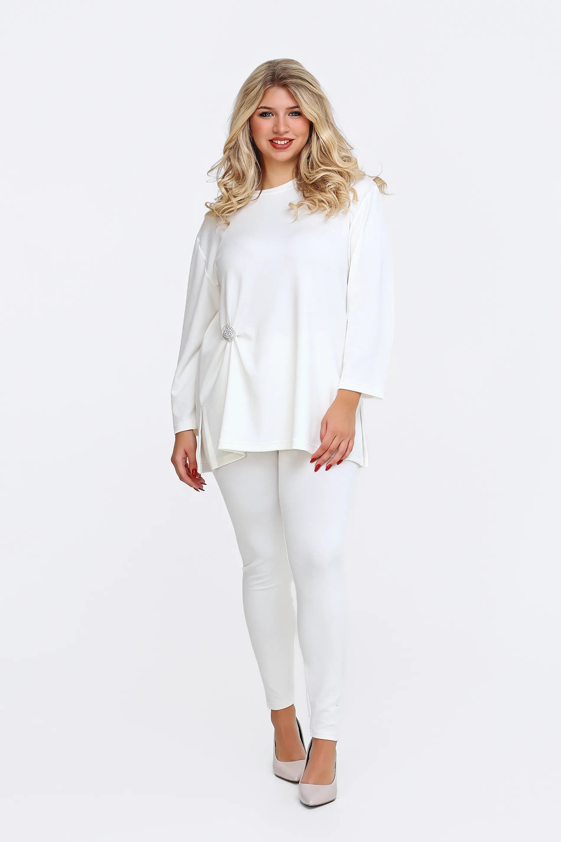 Vigyél egy csipetnyi romantikát a mindennapokba! Ez a felső finom, puha anyagával és a látványos díszítésével azonnal feldobja a legegyszerűbb szettet is. Nőies, mégis letisztult szabása miatt rendkívül sokoldalú: viselheted egy farmerral egy laza napon, vagy egy elegáns ceruzaszoknyával az irodában. Egy igazi különleges alapdarab, ami a kényelmet és a legújabb trendeket ötvözi. Elérhető több színben, M-4XL méretig.