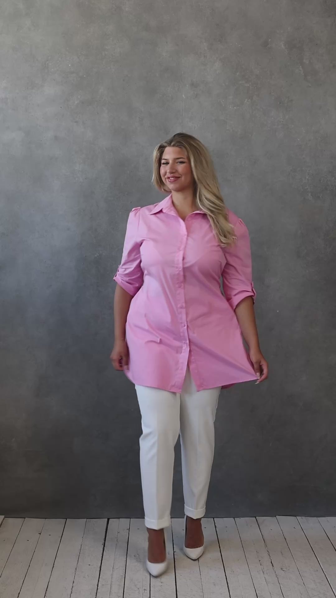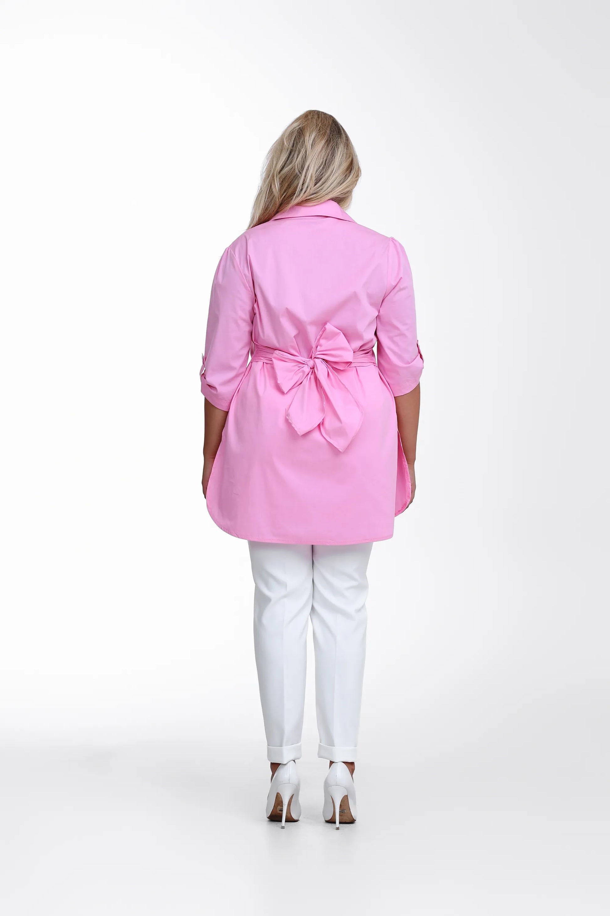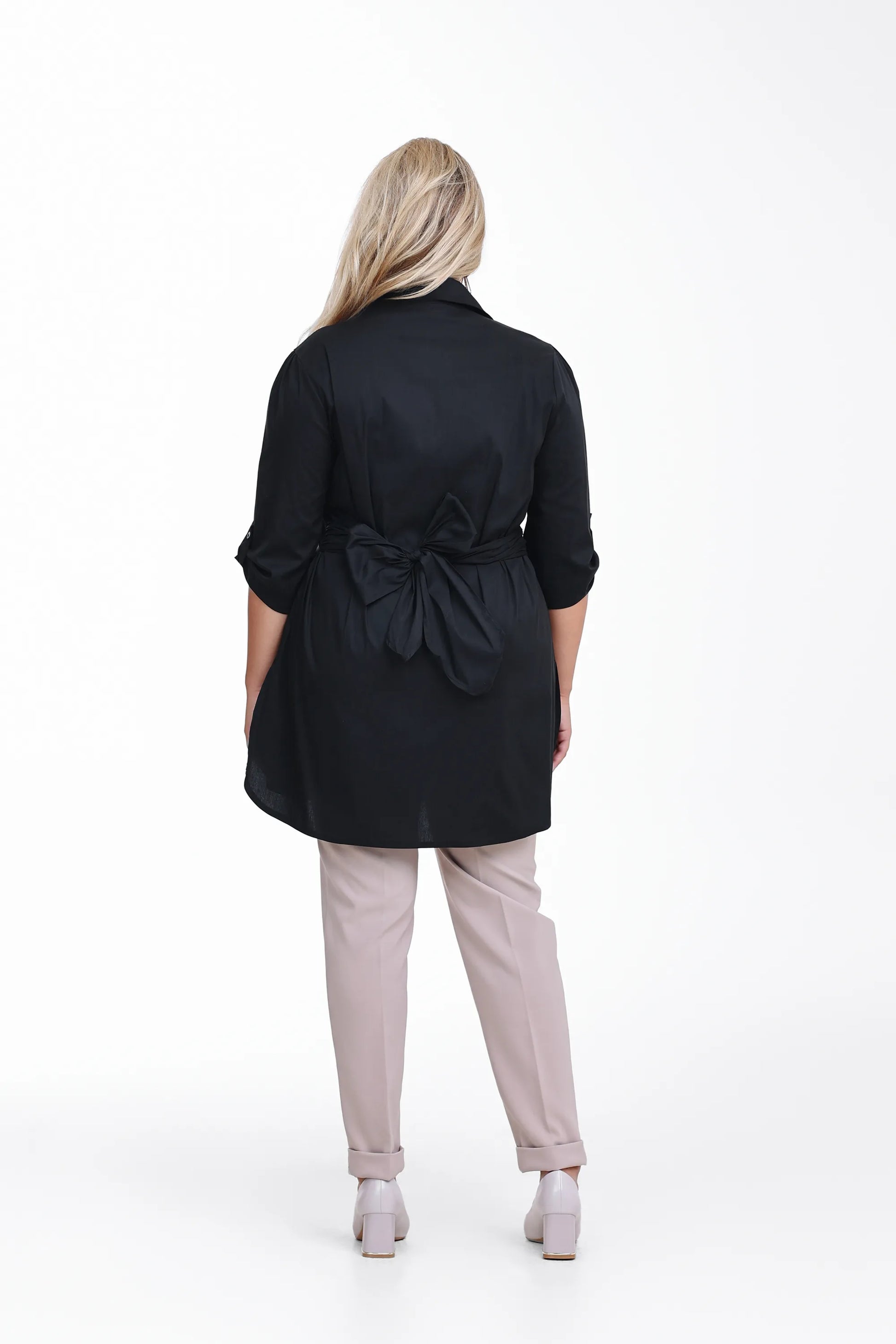 A Mira ingruha a lezser elegancia tökéletes megtestesítője, amely egyszerre kényelmes és stílusos. Hosszított fazonja karcsúsítja az alakot, míg a gombos kialakítás klasszikus megjelenést kölcsönöz. Az ujjak felhajthatók és rögzíthetők, így könnyedén alkalmazkodik a nap hangulatához. Hátul masnival díszített, amely egyedi, nőies részletet ad a darabnak. A Mira ing ruha ideális választás a rohanós hétköznapokra vagy akár egy lazább alkalmi megjelenéshez is.