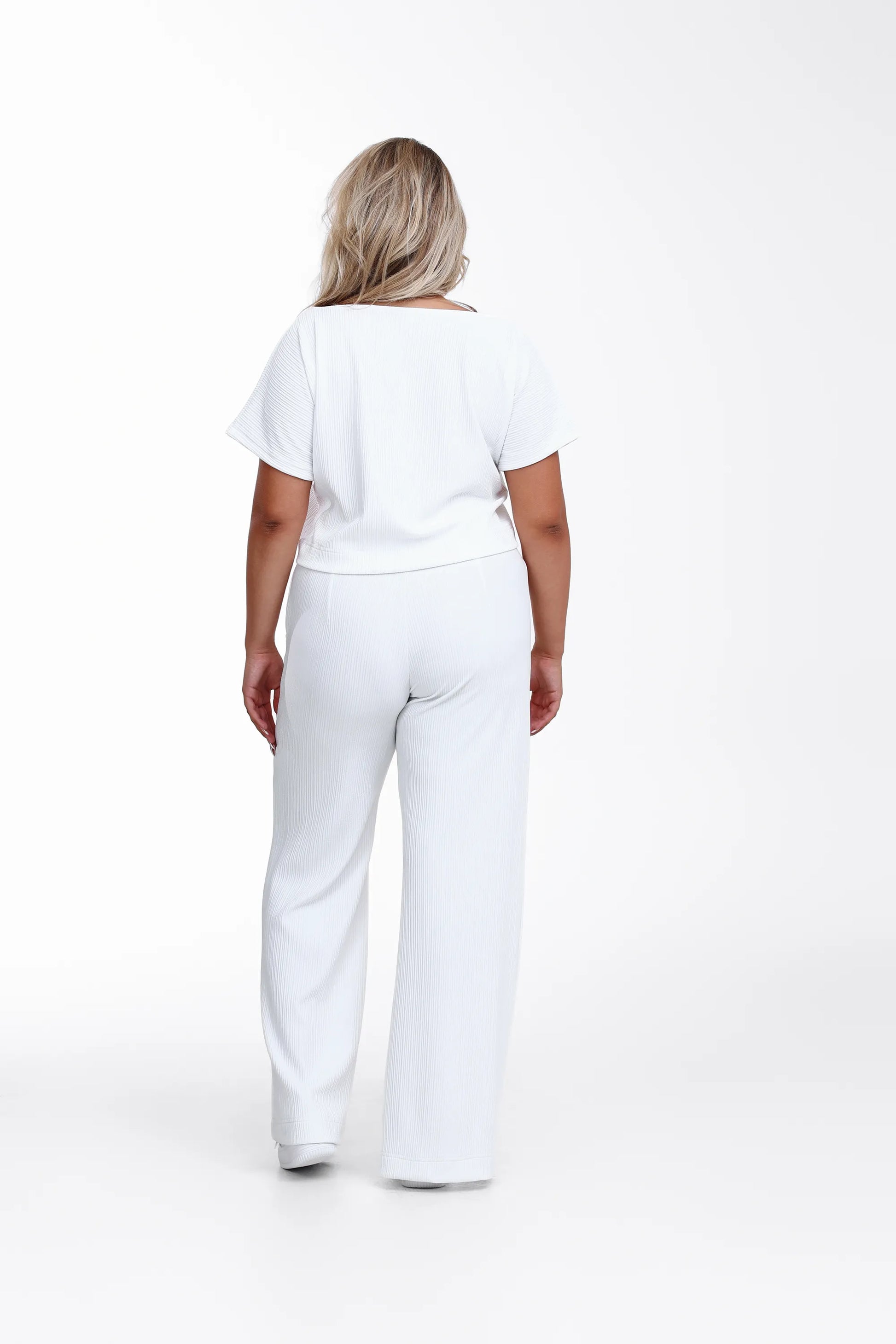 A Novara felső és nadrág együttes letisztult, modern stílust képvisel, amely a kényelem és az elegancia tökéletes egyensúlya. A lágyan bordázott anyag puha tapintású, mégis tartást ad a sziluetthez. A rövid ujjú, enyhén bő szabású felső és a kényelmes, egyenes szárú nadrág minden alkaton jól mutat. Ideális választás otthoni pihenéshez, de egy letisztult sneakerrel vagy elegáns kiegészítőkkel akár utcai viseletként is megállja a helyét. A Novara szett stílusosan teszi kényelmessé a napodat.