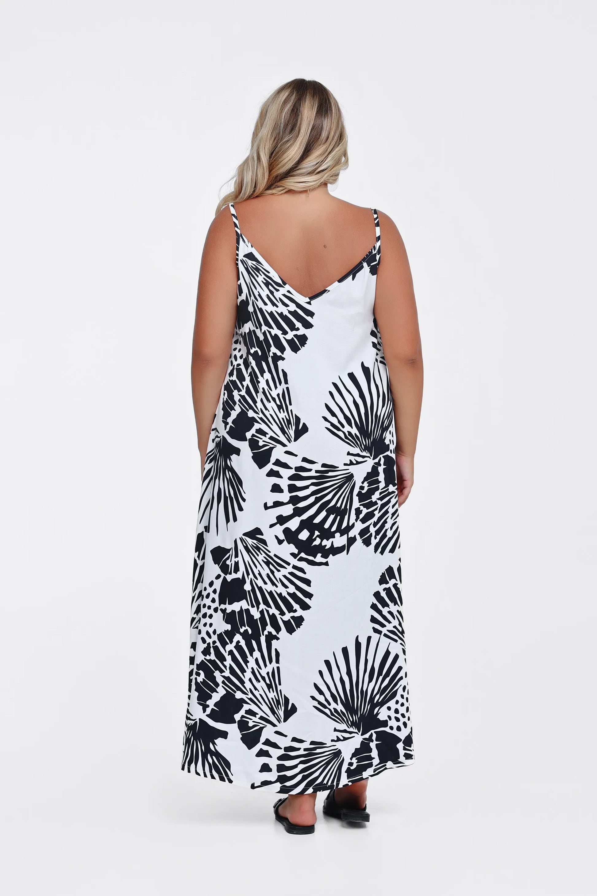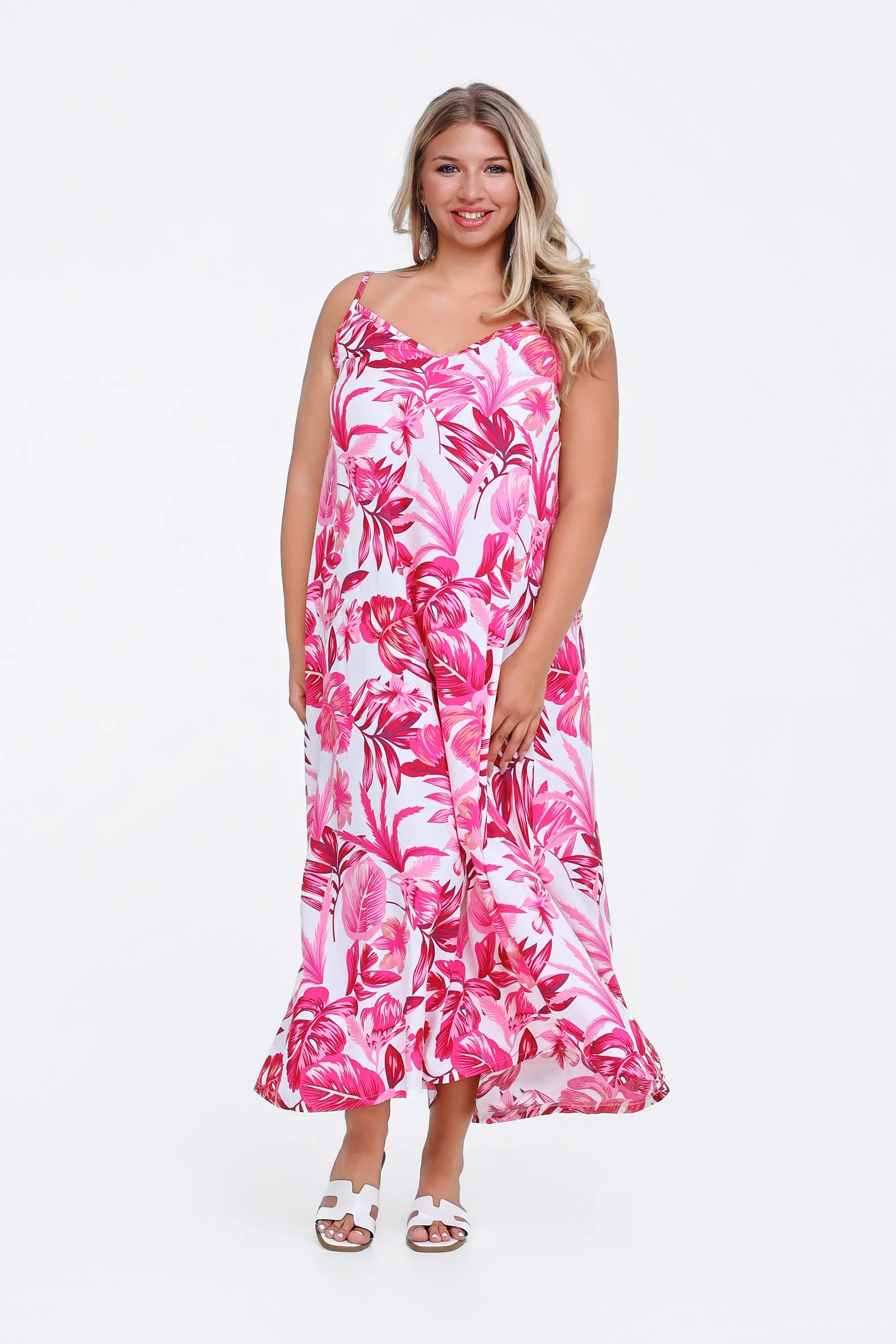 A Paloma maxi ruha könnyed szabásával és vékony pántos kialakításával egyszerre elegáns és kényelmes. Lágyan mozgó, szellős szoknyarésze tökéletes viselet a melegebb napokon is. Egyedi, látványos mintái karaktert adnak, legyen szó városi sétáról vagy nyári eseményről. Három nyárias mintában elérhető, hogy megtaláld a hozzád illőt.