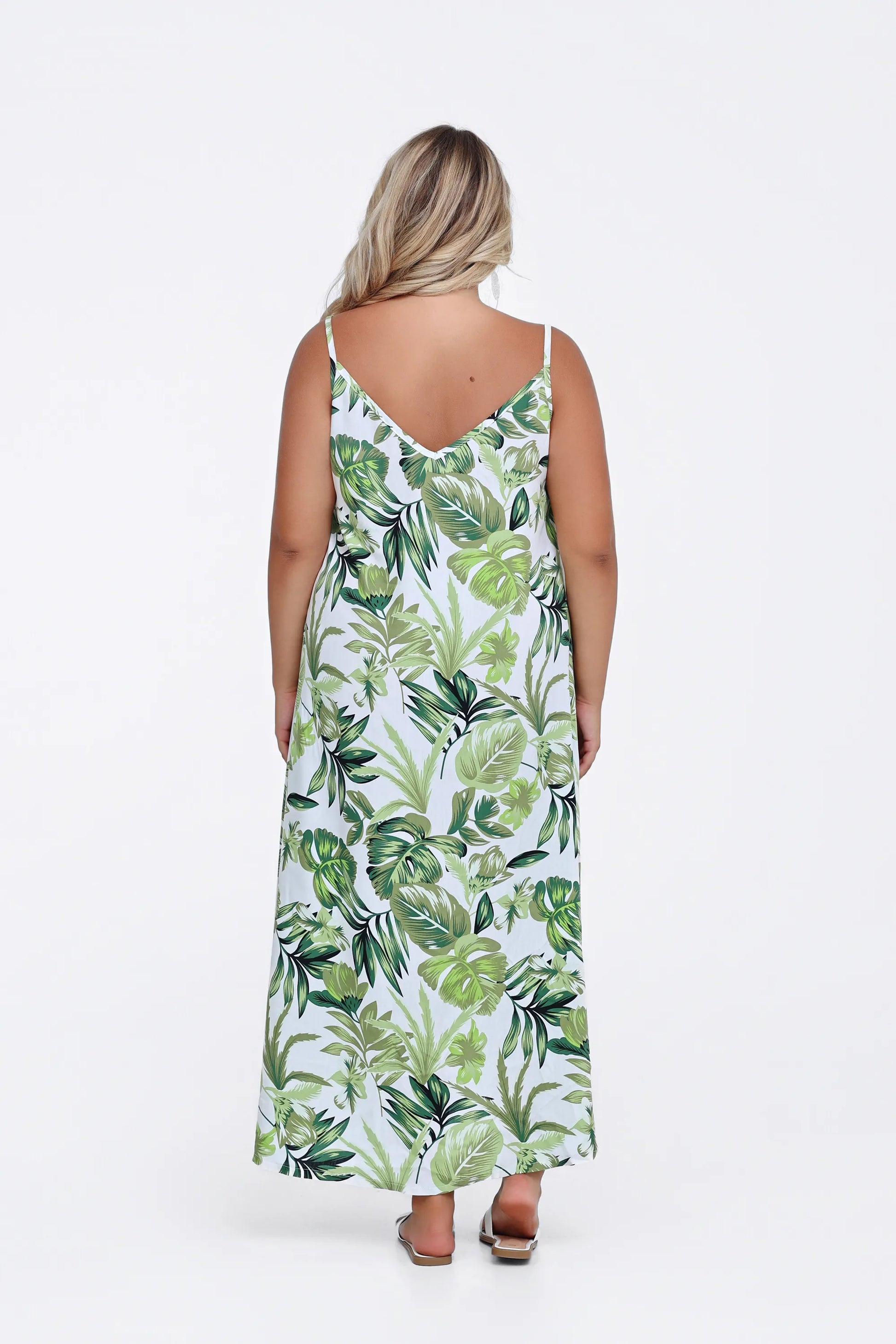 Paloma maxi ruha a nyár legkifinomultabb választása – könnyed szabásának és nőies, vékony pántos kialakításának köszönhetően egyszerre elegáns és kényelmes. A hosszú, lágyan mozgó szoknyarész szellős viseletet biztosít, miközben nem tapad a testre, így ideális melegebb napokra is.