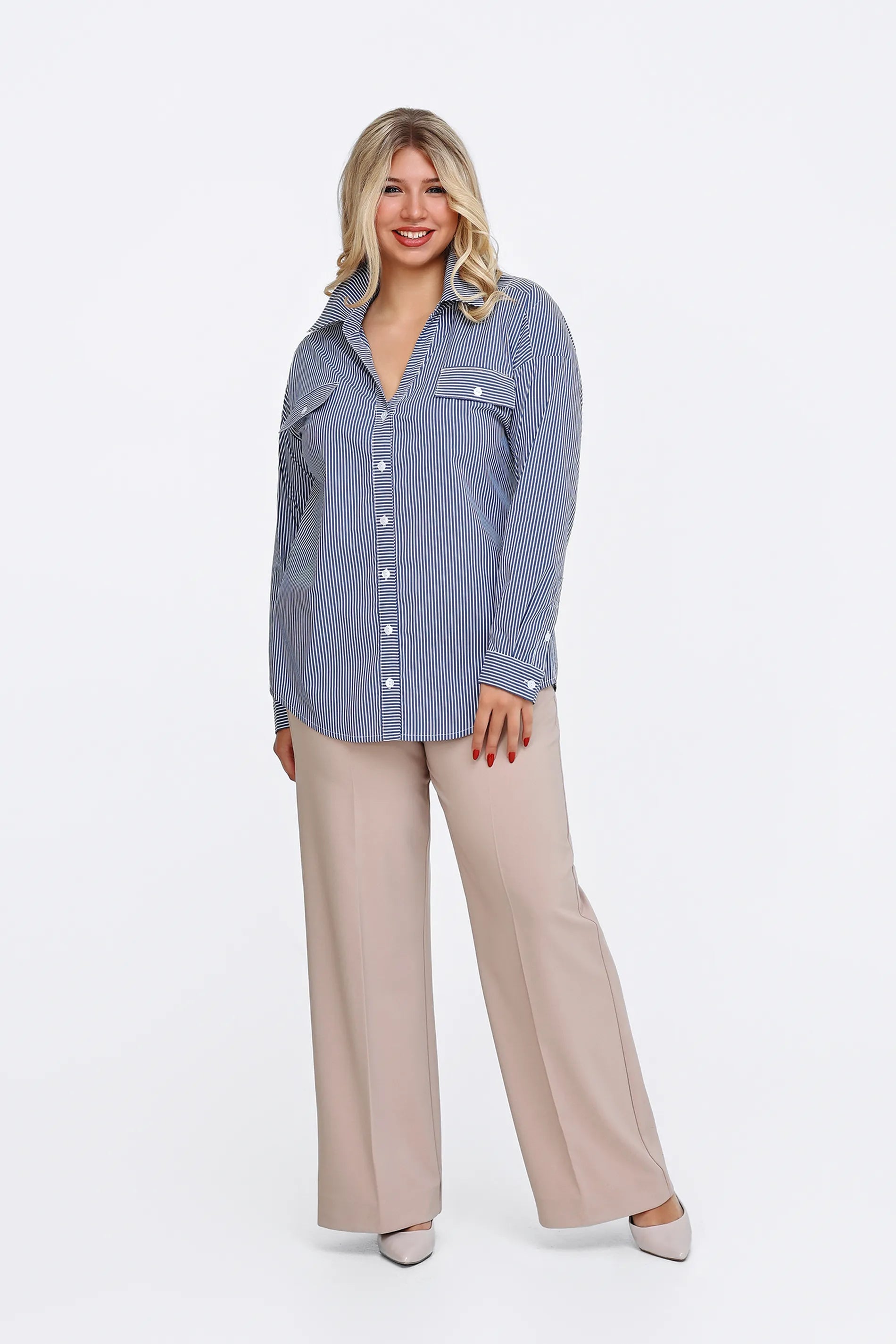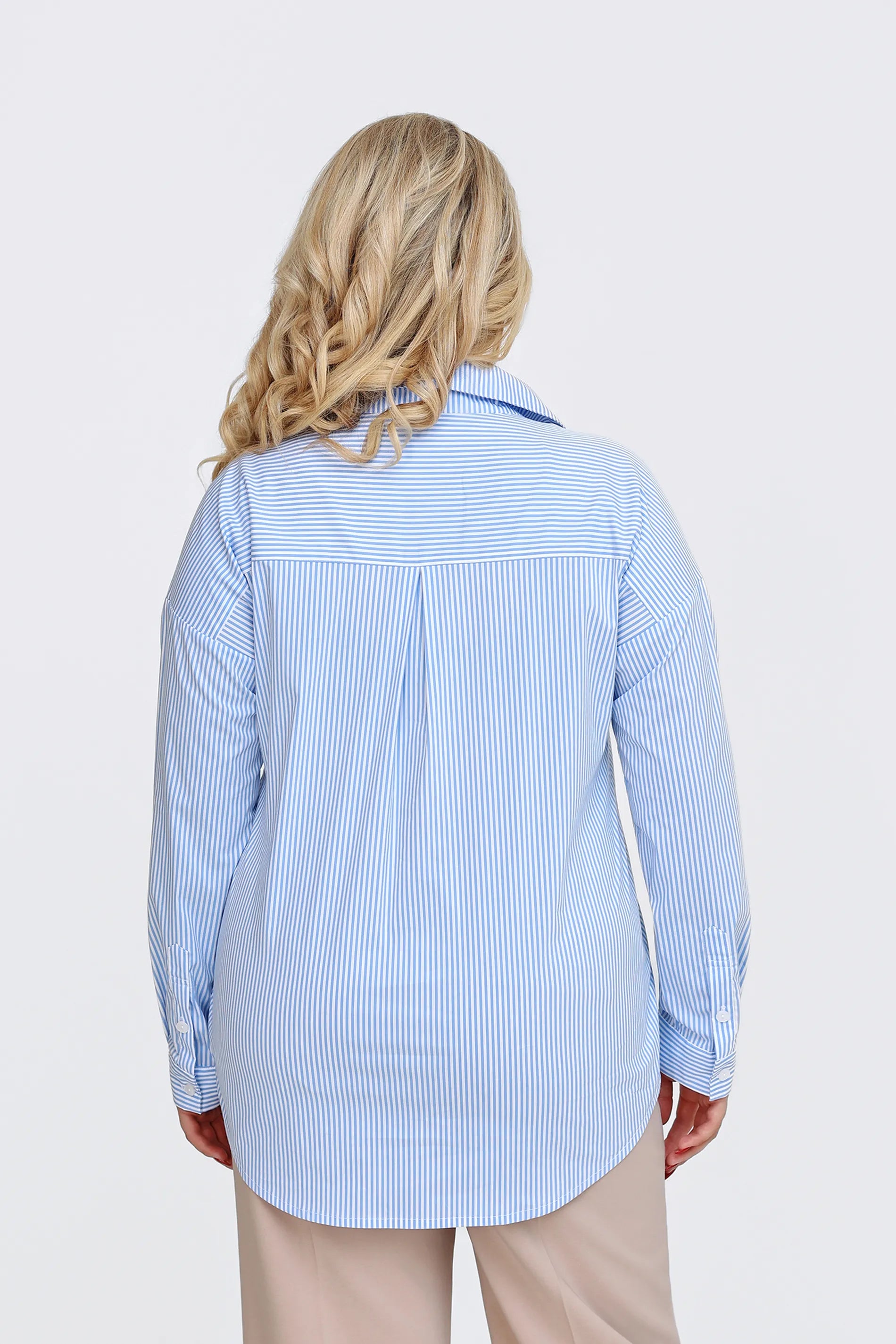 A Stella ing az irodai elegancia és a modern kényelem tökéletes ötvözete. Magas pamuttartalmú, enyhén rugalmas anyaga egész napos komfortot biztosít, miközben szépen tartja a formáját. A klasszikus inggallér és a végig gombos kialakítás professzionális megjelenést kölcsönöz, míg a lefelé bővülő, A-vonalú szabás és a derekat hangsúlyozó megkötő finoman karcsúsítja az alakot.