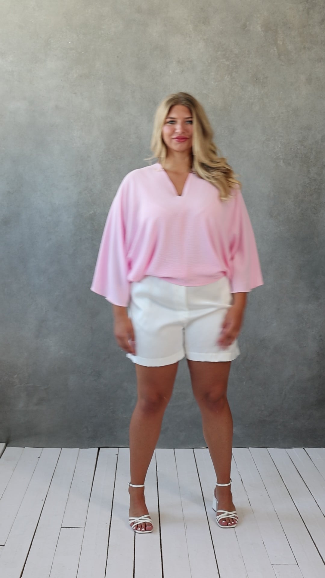 Ez a felső igazi stílusos alapdarab: kényelmes, mégis nőies viselet, amit könnyedén kombinálhatsz akár egy elegánsabb nadrággal, akár egy lazább shorttal.